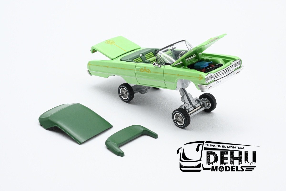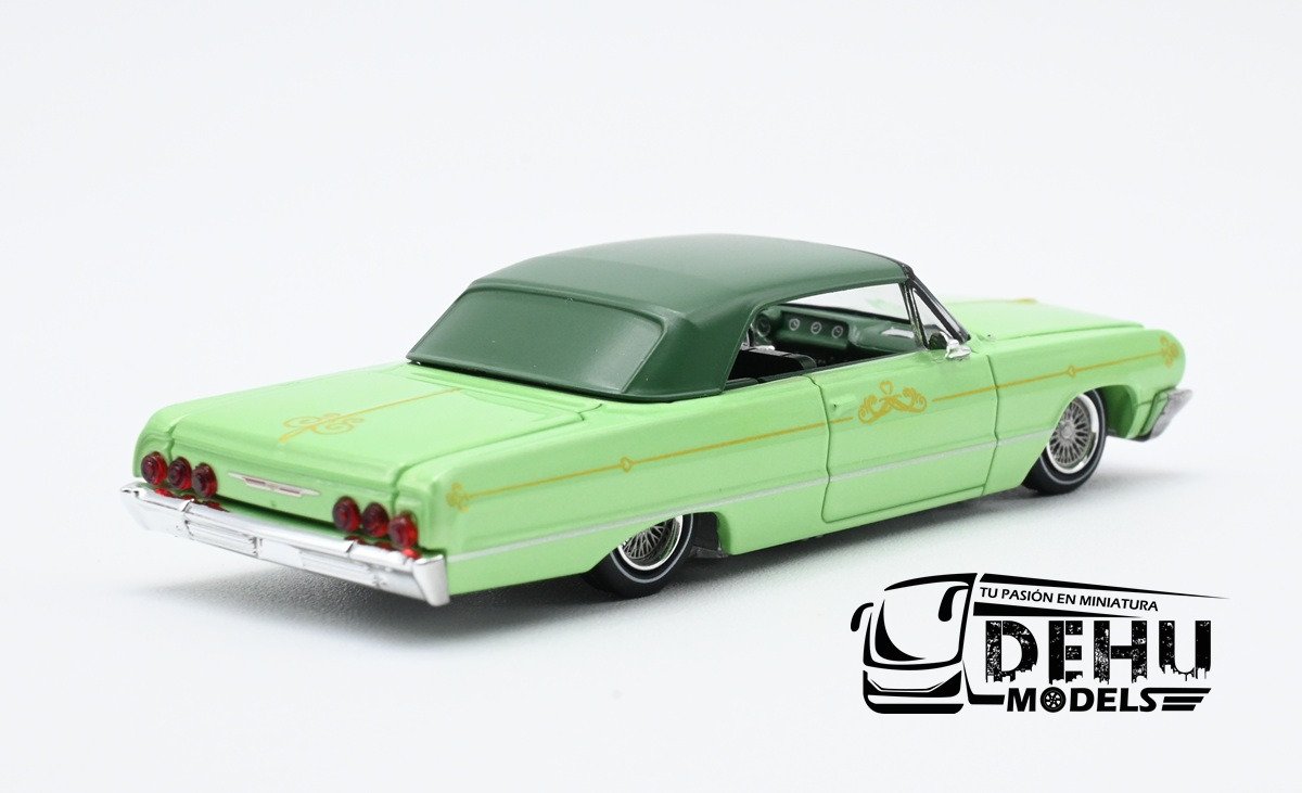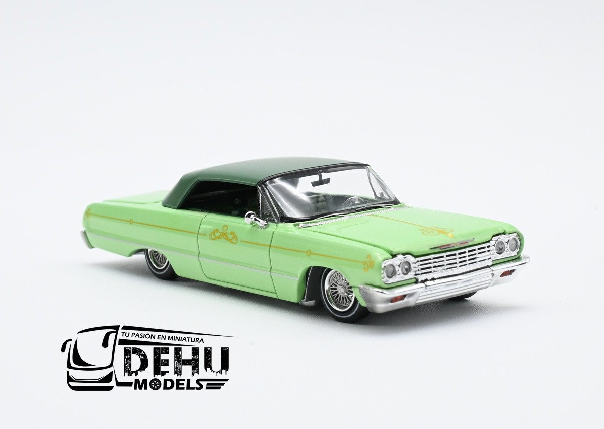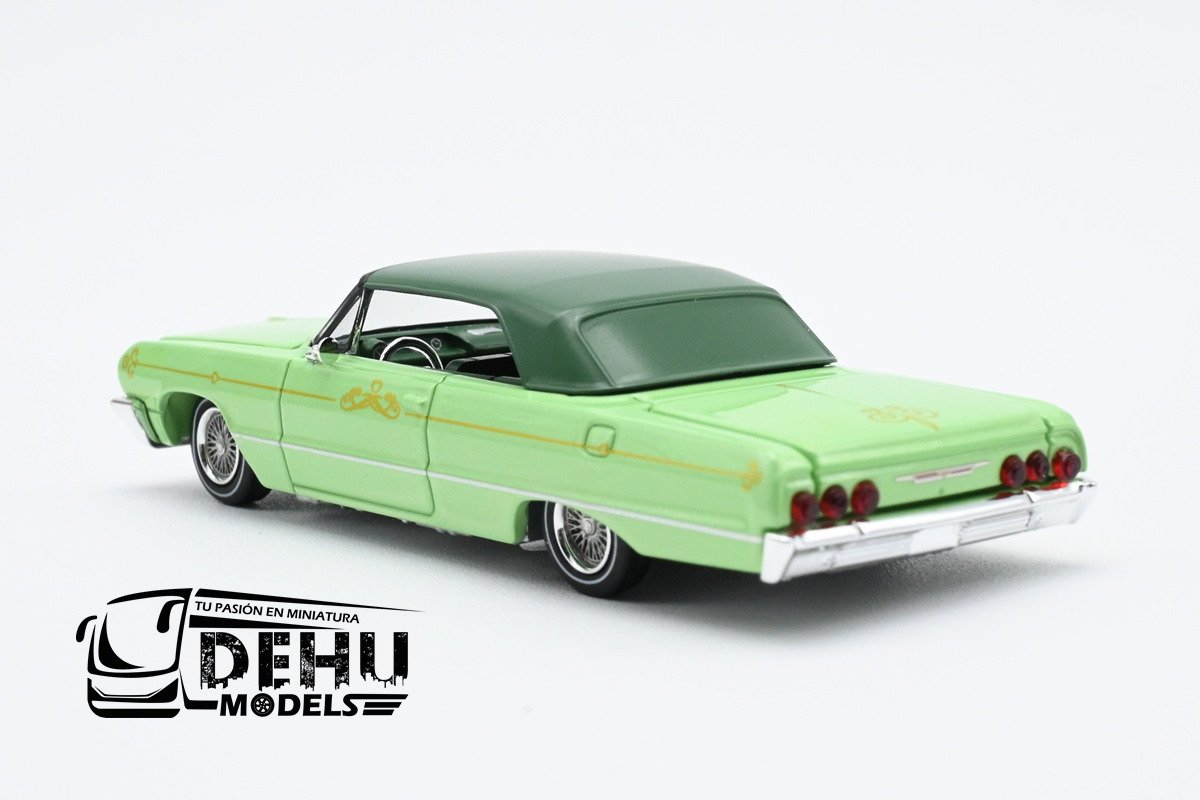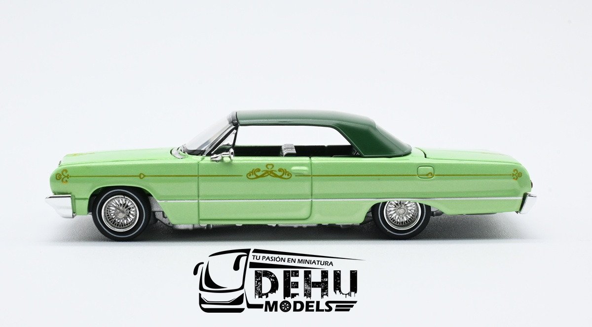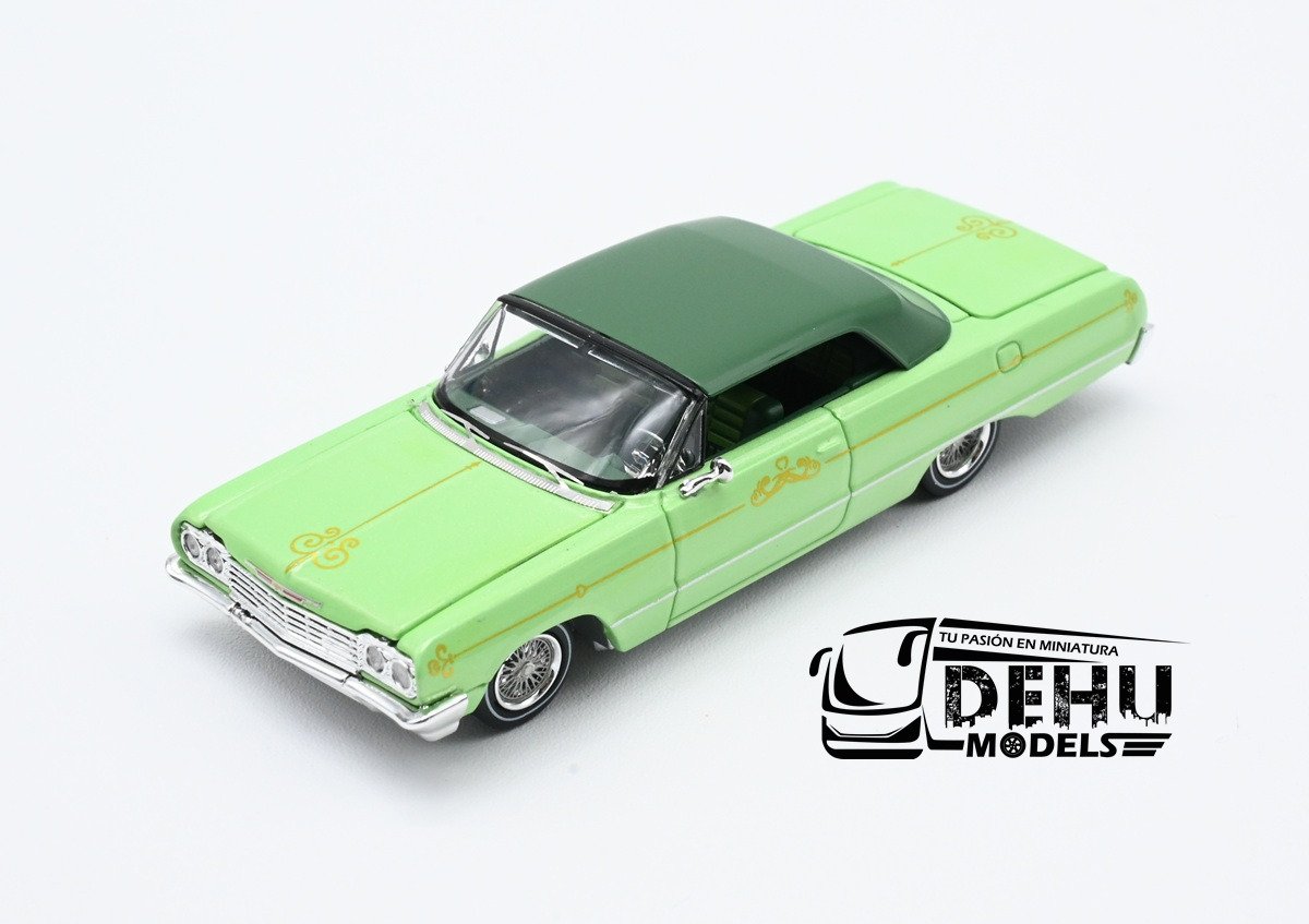 Auto a Escala 1/64 Chevrolet Impala Lowrider Verde-Blanco, CHIMLOVEBLFW Fine Works 64
