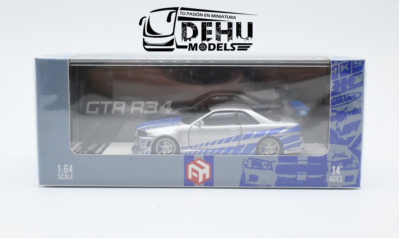 Sé el primero en valorar “Auto a Escala 1/64 Nissan Skyline GTR R34 Fast & Furious Gris – Azul, FCHNSGGRAF&F Focal Horizon”