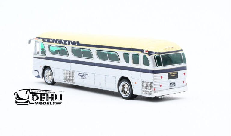 Autobús a Escala 1:87 General Motors GM-PD4104 1959 Parlo Coach Michaud Trailways Azul – Arena – Gris, 87-0303