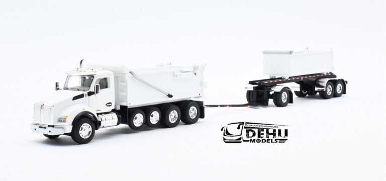 Camión Kenworth T880 Dump Truck Volteo con remolque de volteo de transferencia Rogue Blanco 60-1279