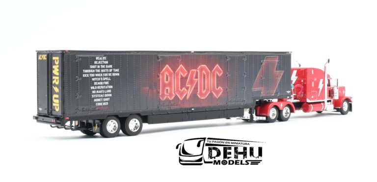 Tráiler Peterbilt 389 Techo Medio Con Remolque Caja Seca de Mudanza Kentucky AC / DC Rojo – Negro, 69-1063