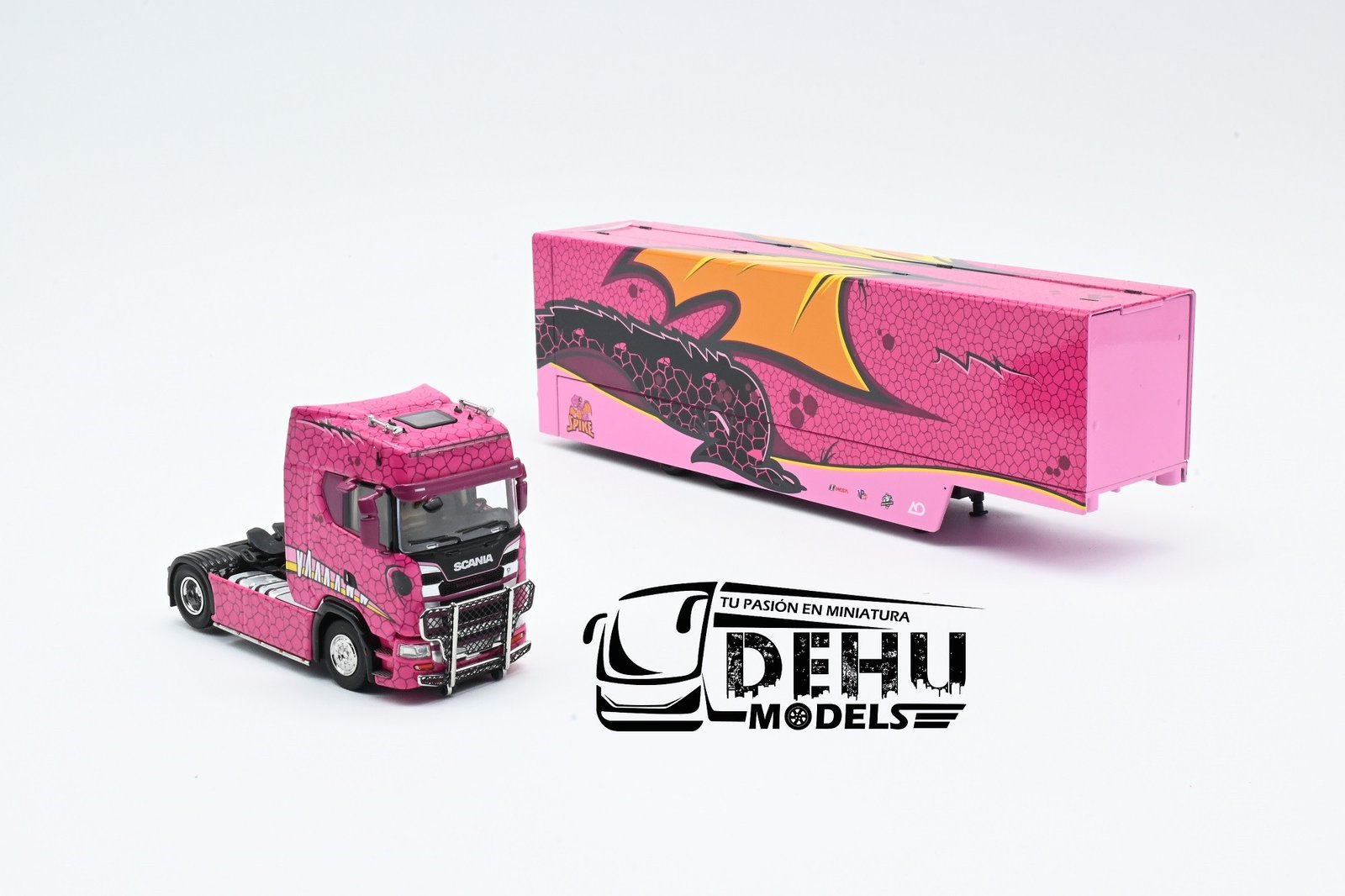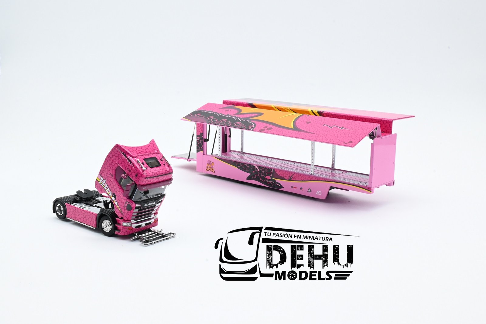 Sé el primero en valorar “Tráiler a Escala 1/64 Scania S730 Con Remolque Plataforma de 2 pisos transportador de autos Spike Rosa, MAXSCAS730SPIRO Maxwell”